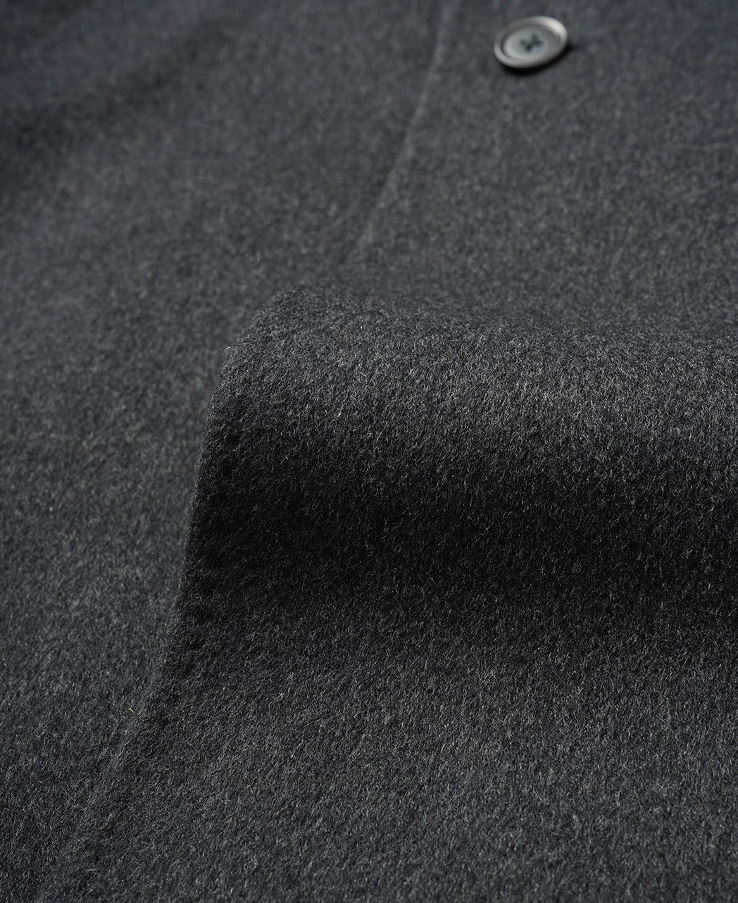 Made from a melton-like brushed fabric, it offers both substantial warmth and the smooth, luxurious touch characteristic of cashmere.
