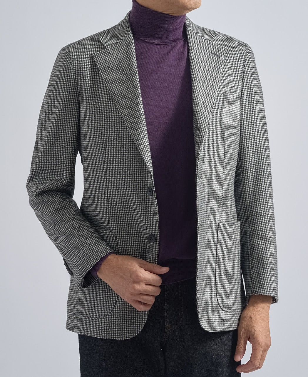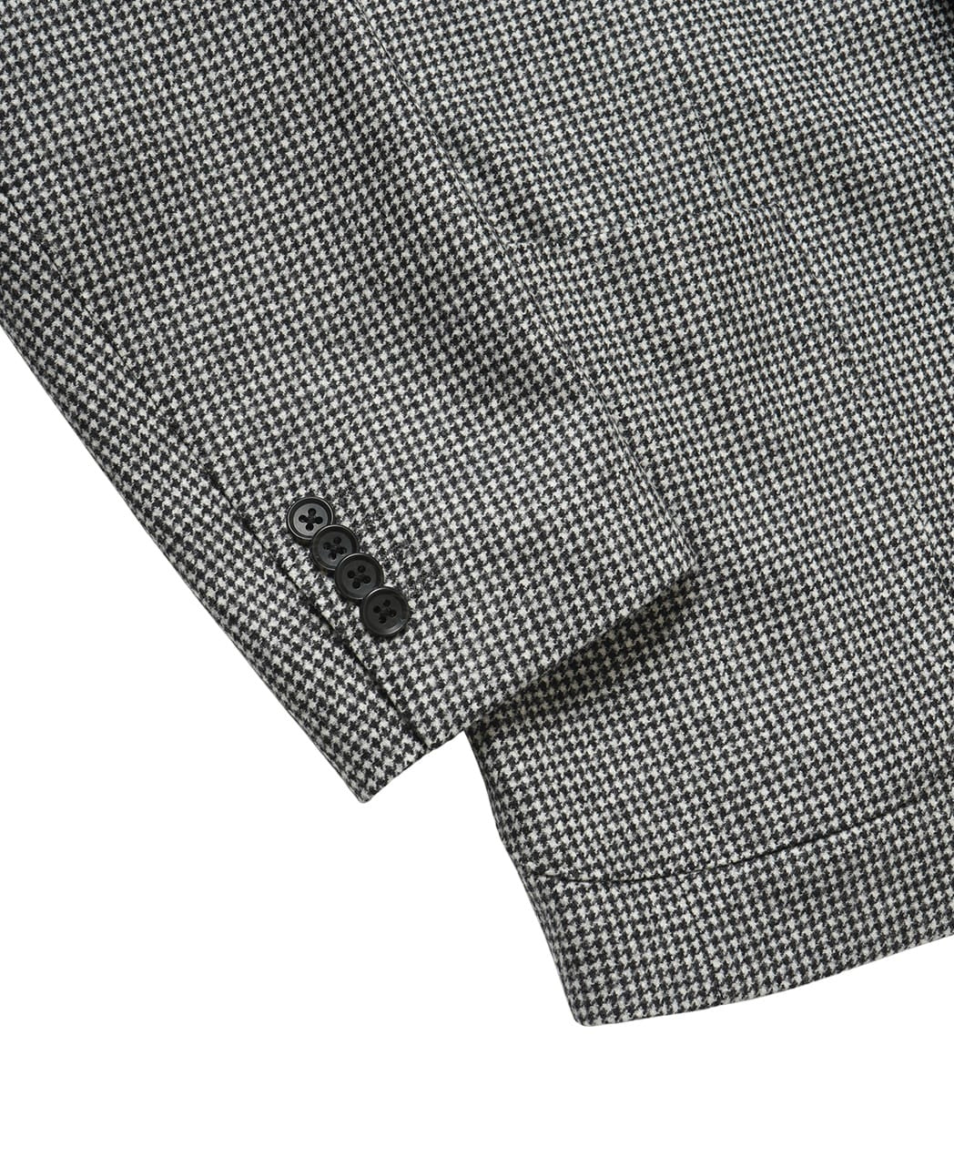 Houndstooth Jacket Inspired by the traditions of Italian sartoria (tailoring), this jacket is crafted from premium wool fabric by the renowned Italian mill CANONICO. The subtle houndstooth pattern adds a refined touch while maintaining a sophisticated, understated look — a tasteful twist compared to plain fabrics.