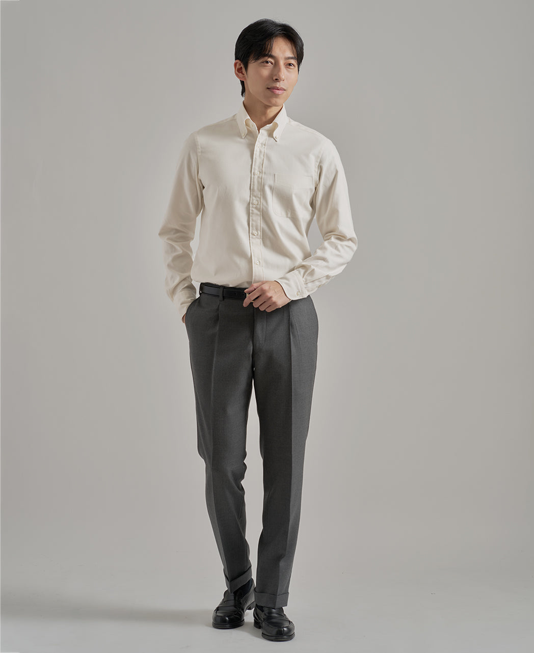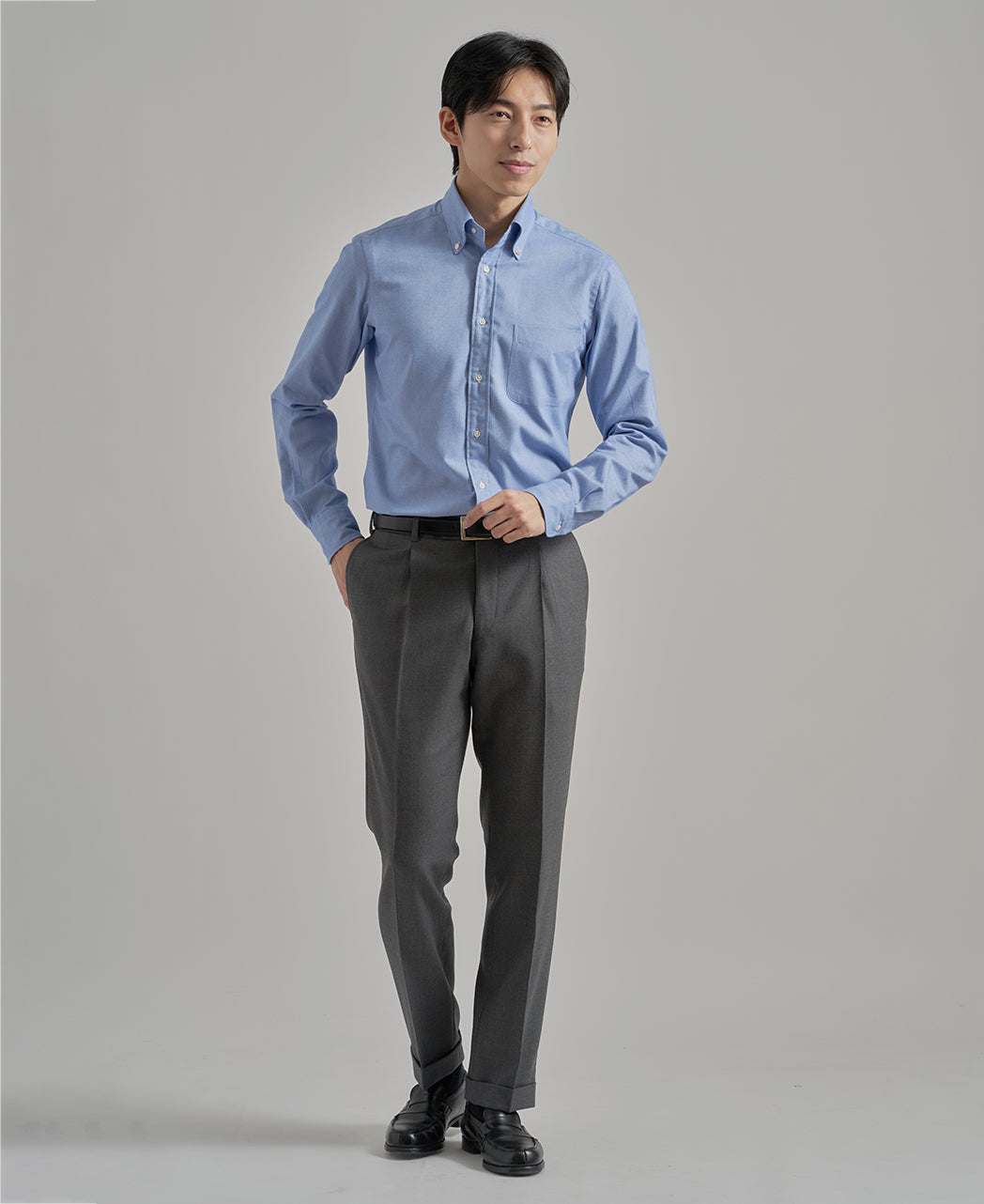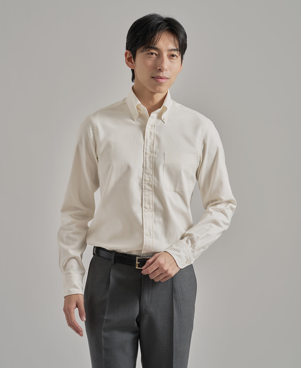 ● Soft Brushed Fabric The Oxford fabric is treated with a subtle flannel brushing, resulting in a soft texture with a warm finish. It's perfect for the colder autumn and winter months, adding a seasonal touch to your outfits.