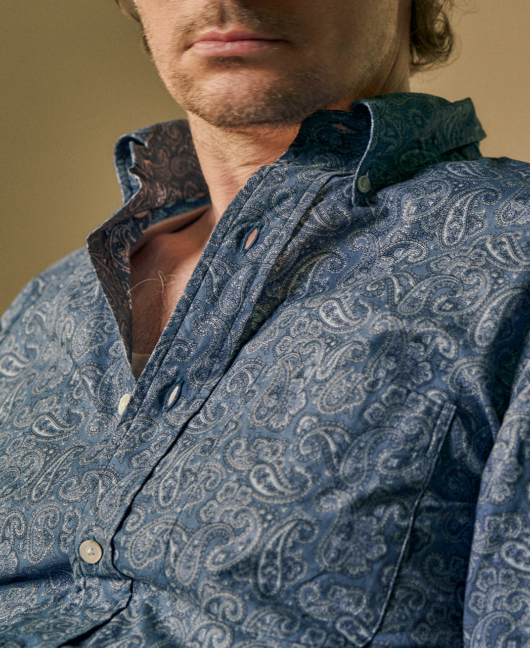 Design A design that balances Ivy-style neatness with a relaxed, casual feel. A subdued blue-based paisley print that adds quiet individuality to any outfit.