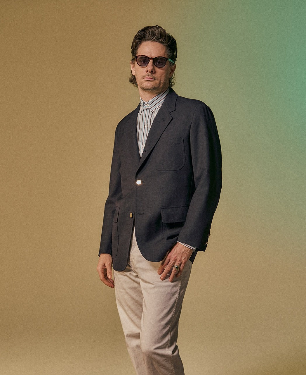 Crafted from 48-count 3-ply high-twist wool (700 twists), this blazer offers exceptional wrinkle resistance and a crisp, dry touch. The robust triple-strand yarn ensures a beautiful drape and lasting durability. Perfect for the active gentleman, it maintains a sharp silhouette even in humid conditions. Experience the ultimate blend of breathability and refined structure.