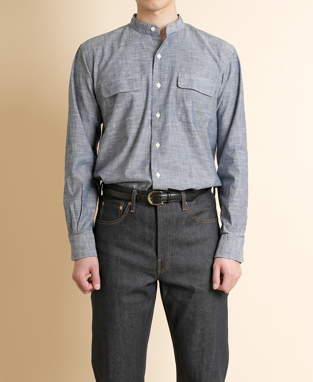 VINTAGE IVY- BAND COLLAR DARK CHAMBRAY