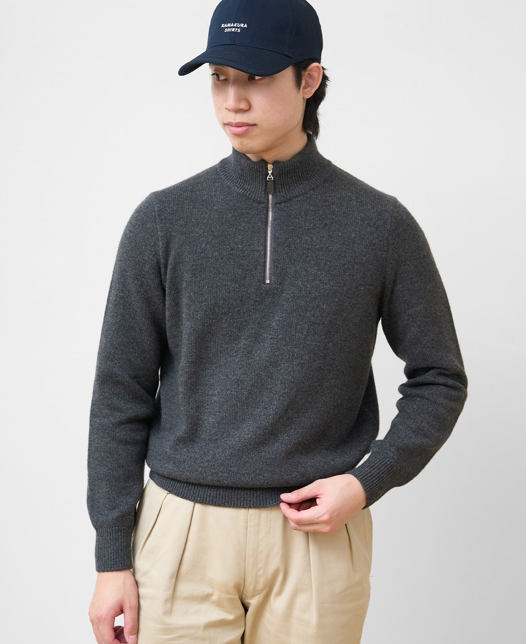 Half-Zip Sweater Crafted from 100% luxurious cashmere, this exquisite piece offers exceptional comfort and refinement. The mid-gauge knit provides excellent warmth, making it ideal even as an outer layer during the winter season. Its irresistibly soft, melt-in-your-hands texture and the gentle warmth unique to cashmere are truly remarkable.