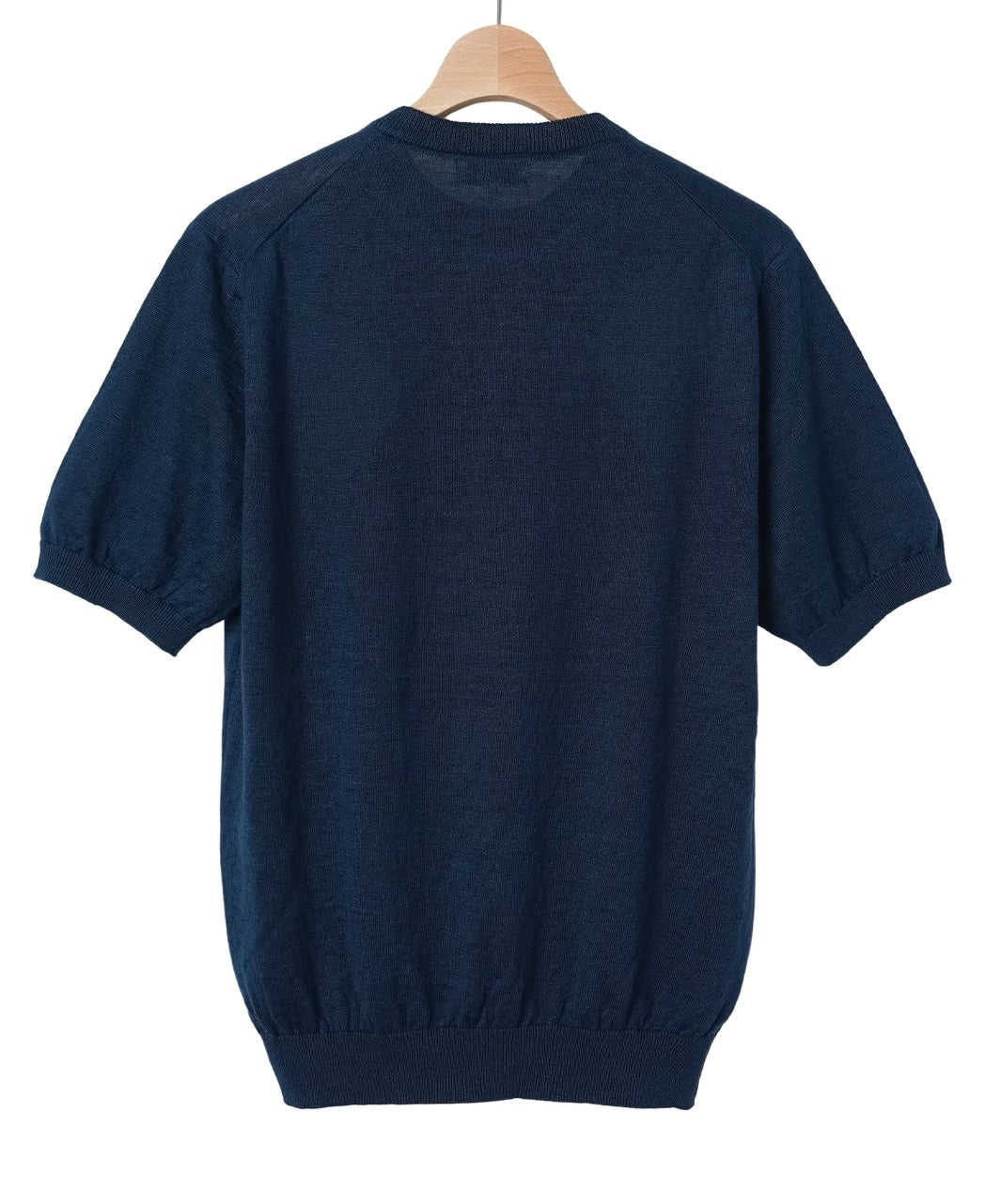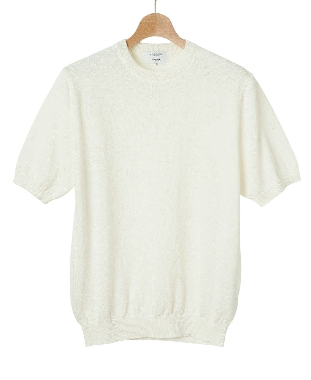 A breezy summer knit T-shirt made from 100% linen, featuring the crisp texture and cool touch unique to the fiber.