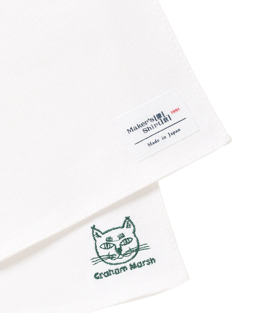 The illustration of our Vintage Ivy cat "MAX" is drawn by Graham Marsh, our collaborator for our Vintage Ivy Collection. It is used from oxford fabric used in our basic for button-down shirts.