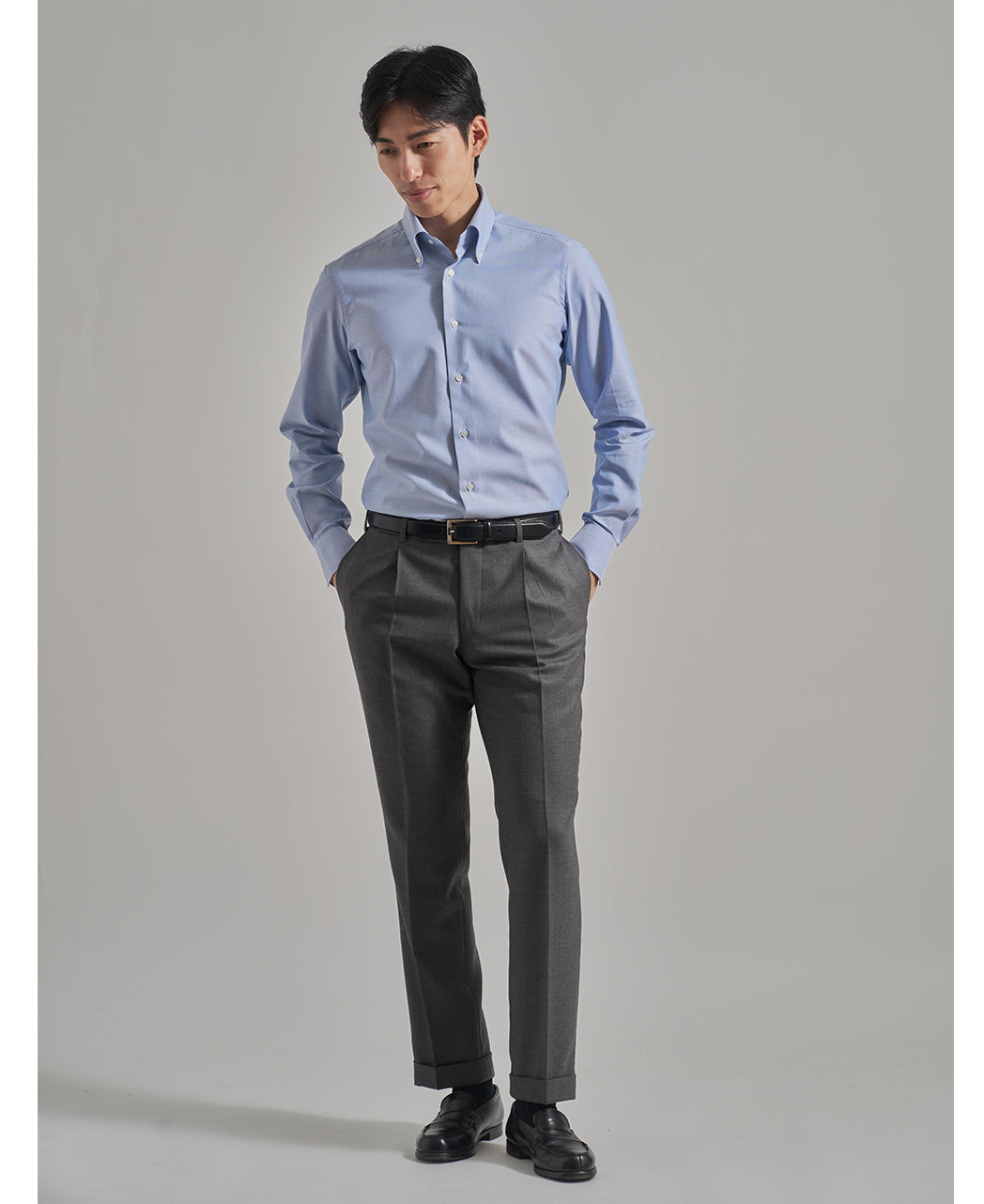 This button-down shirt features a slightly larger collar, giving it a refined presence without being overpowering. With the use of a fused interlining, the collar maintains a crisp structure and a beautiful roll. Whether for business or smart casual occasions, the wide range of colors and patterns ensures you can find the perfect piece just for you.