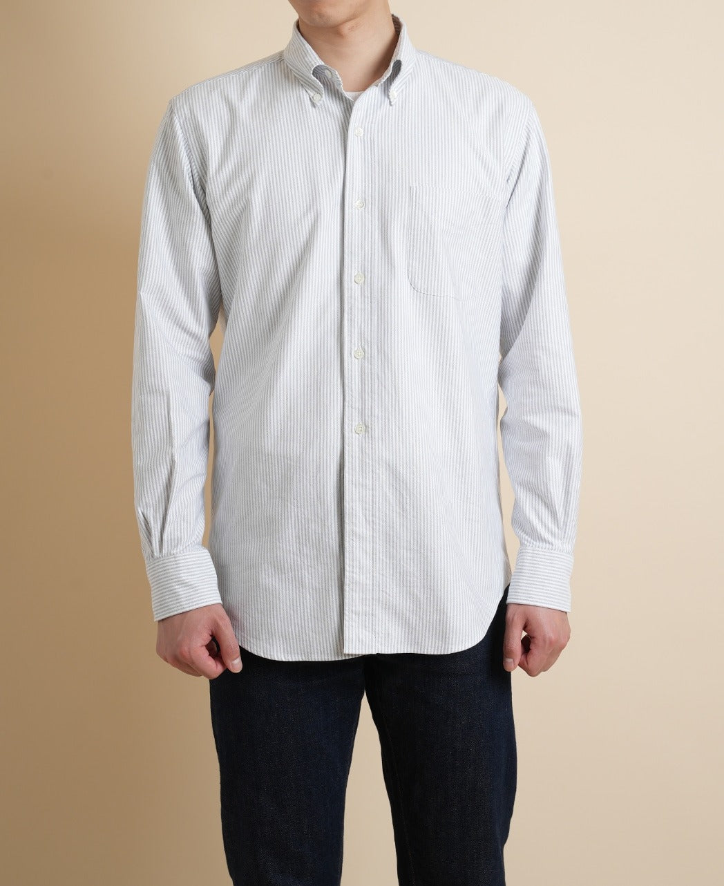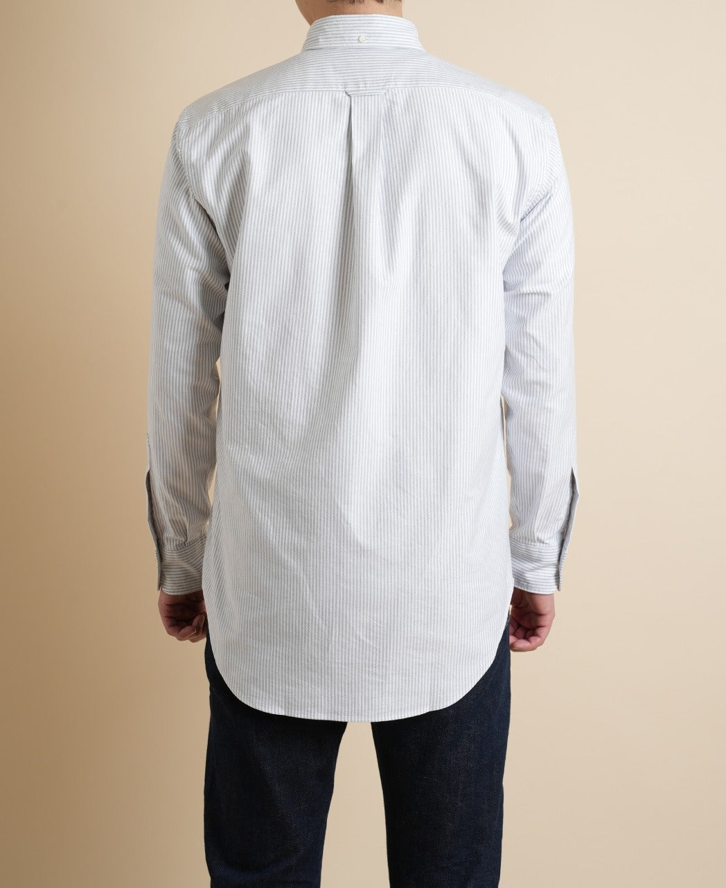 Designed in collaboration with illustrator Graham Marsh, the Vintage Ivy oxford cloth button-down shirt resembles what would be found on American college campuses in the 1960s. The shirt body comes in a regular fit with a box pleat at back. The shorter three-inch collar offers two quintessential Ivy details: a back-button and locker loop. The shirt cuffs are pleated, and the six-button front uses real cream-colored takase shell buttons. An indispensable piece for any wardrobe, the Vintage Ivy model can be worn tucked-in on a night out and untucked for a Sunday at the park.