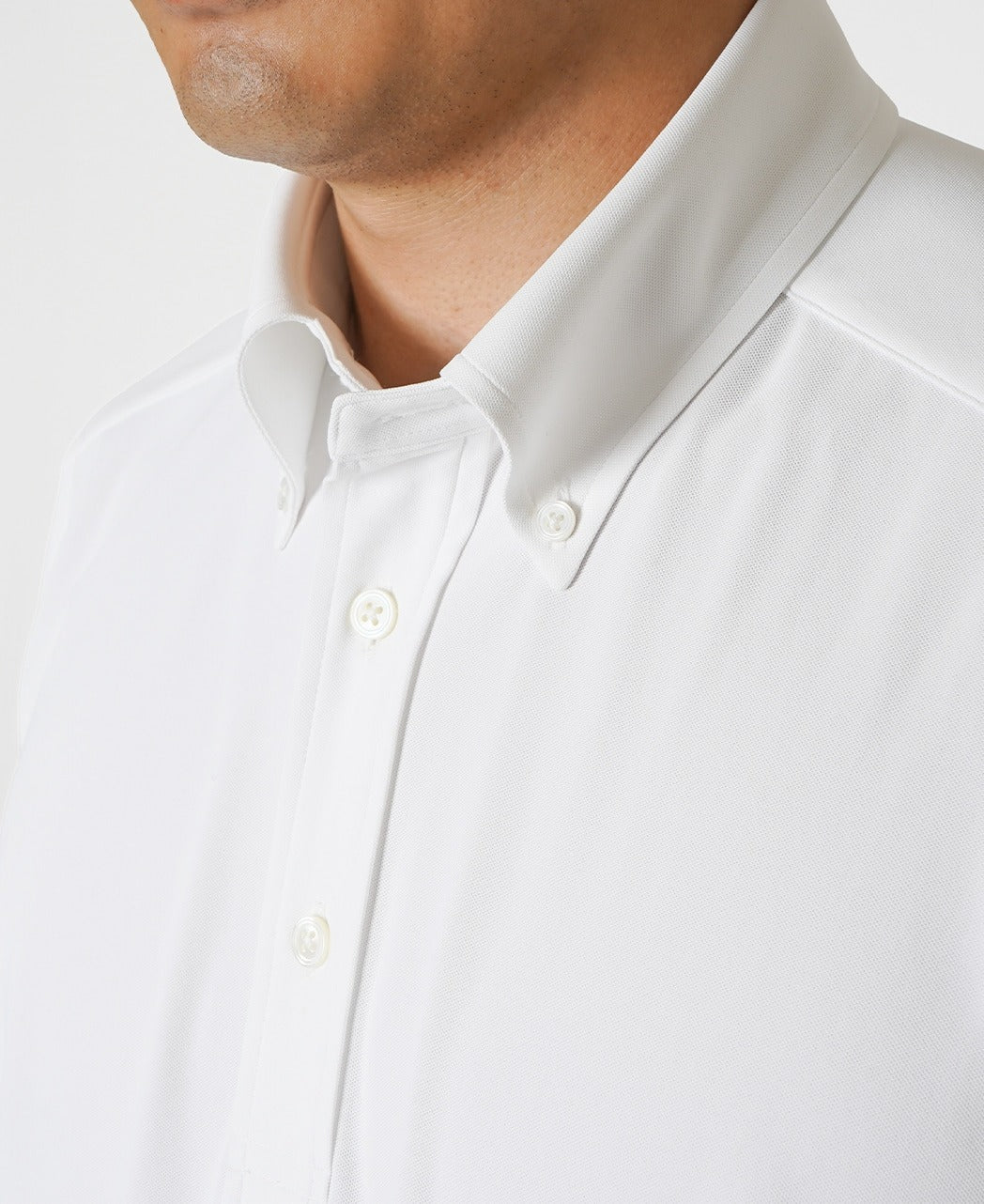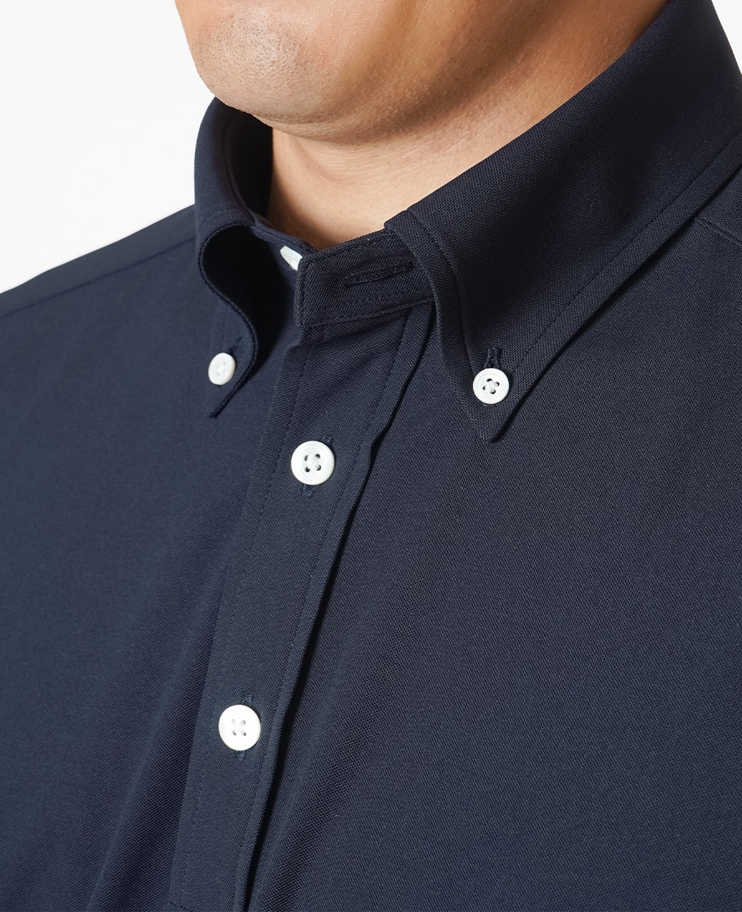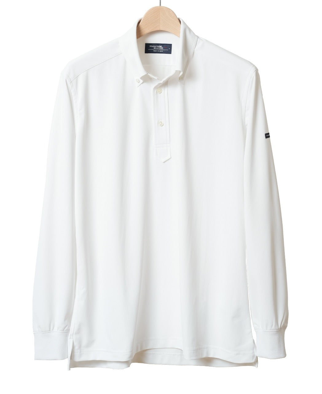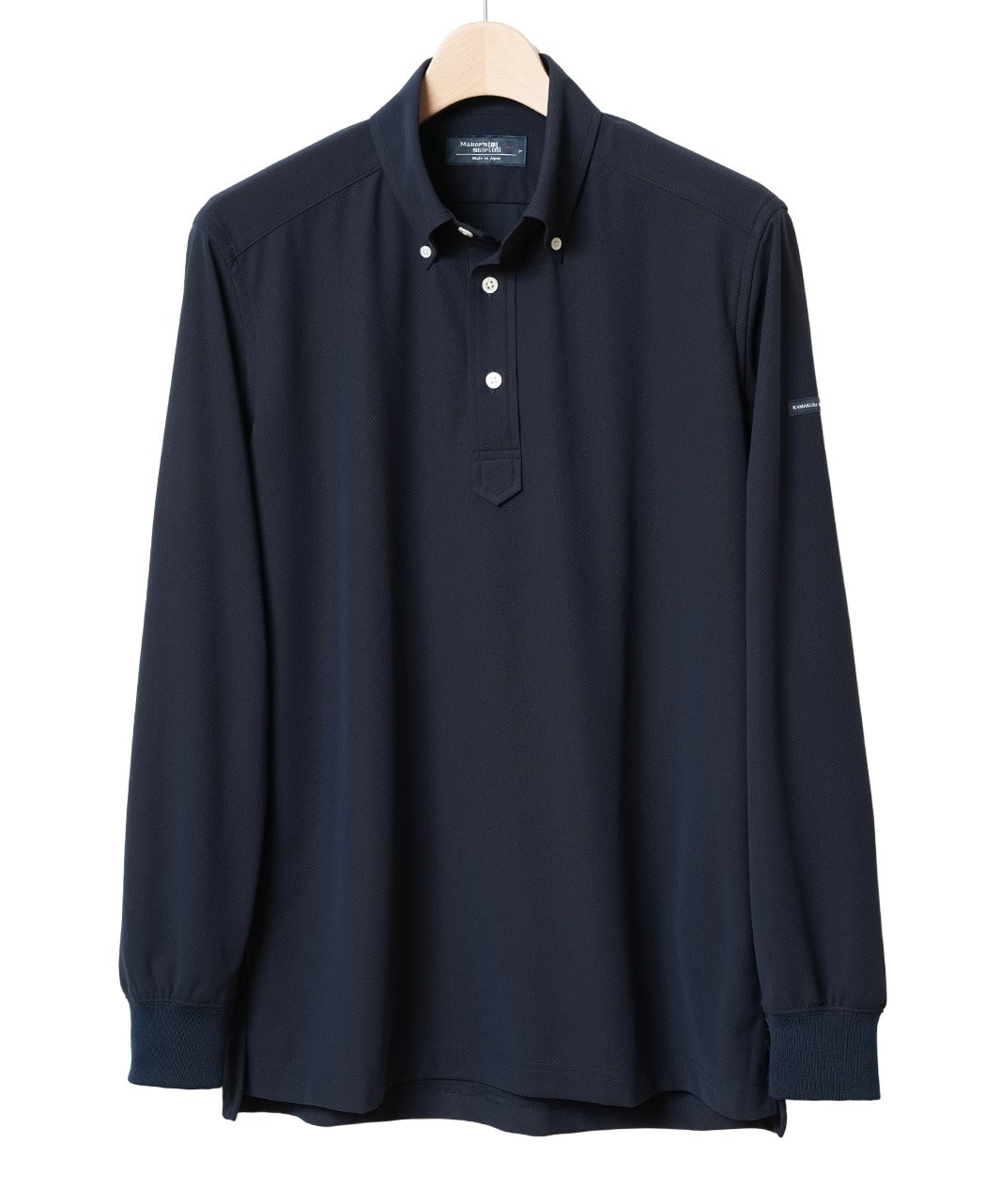 "A polo shirt thoughtfully designed for the golf scene — from fabric to pattern." Featuring a button-down collar with a stand, this polo shirt blends function and form. Its clean and refined design allows for a smart look both on the course and when traveling to and from the club.
