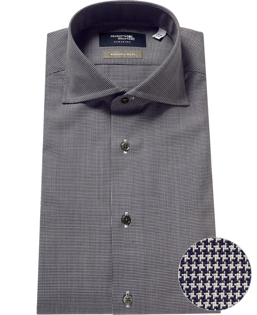 A houndstooth shirt with a smoky texture that easily complements classical attire. The subtle and intricate check pattern allows for versatile pairing with ties and suits.