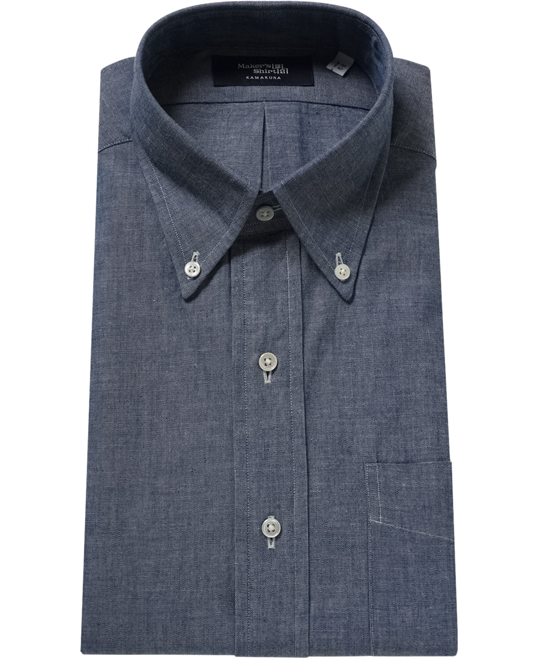 The workwear-originated chambray fabric has been elevated into a refined dress-shirt style unique to Kamakura Shirts.