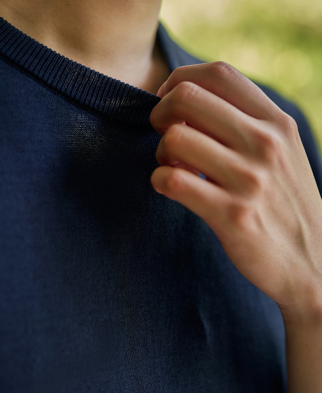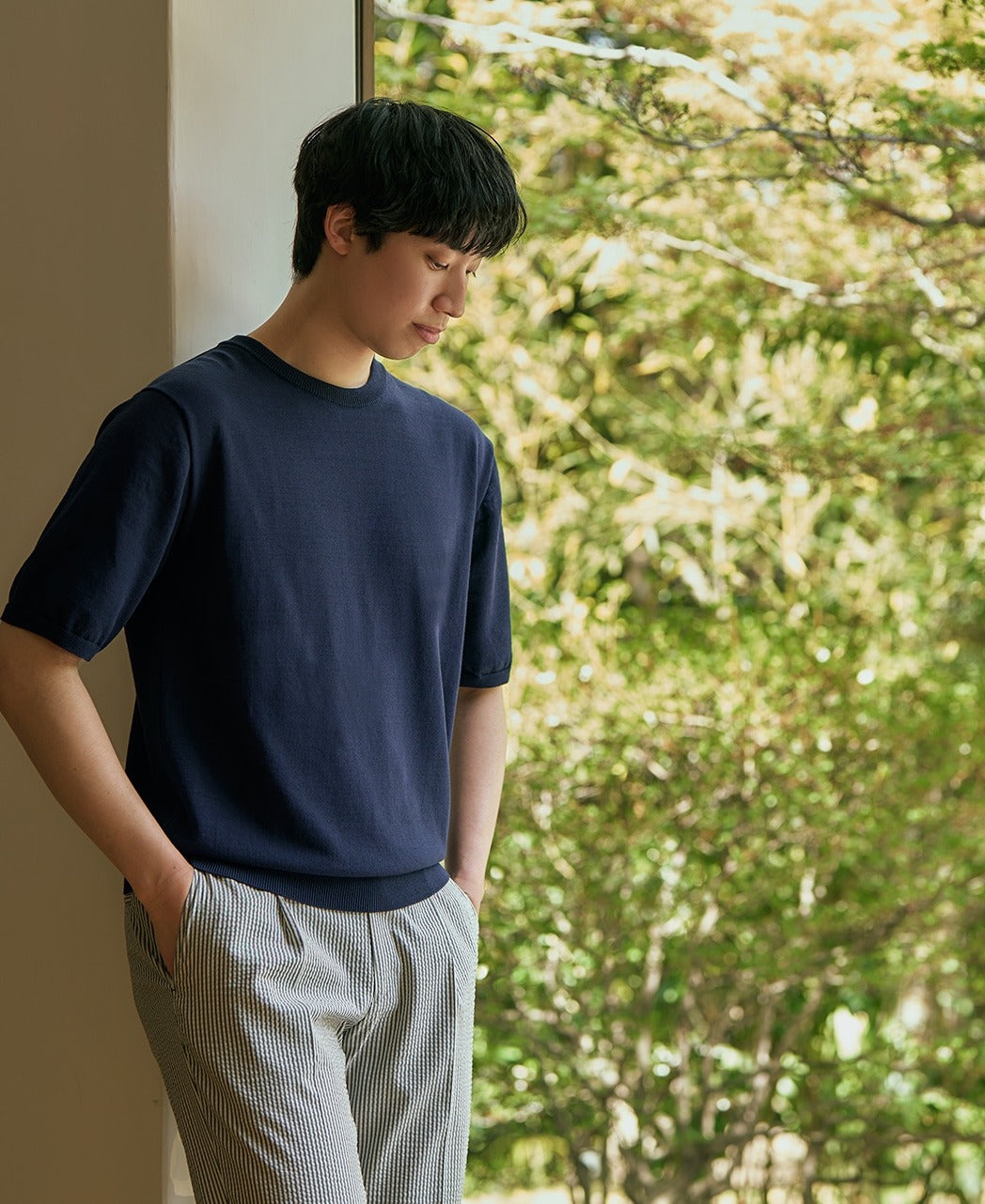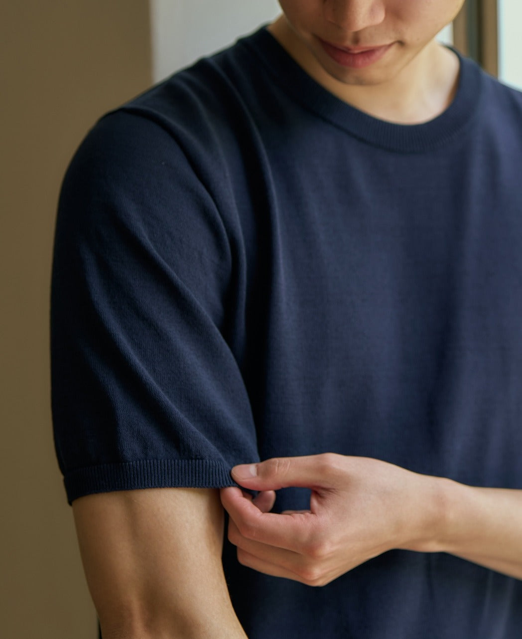 A cool and refined knit T-shirt created in collaboration with MOONCASTLE, a long-established knitwear factory in Osaka. Made from 100% cotton ice cotton fabric, it offers outstanding comfort even in the summer.