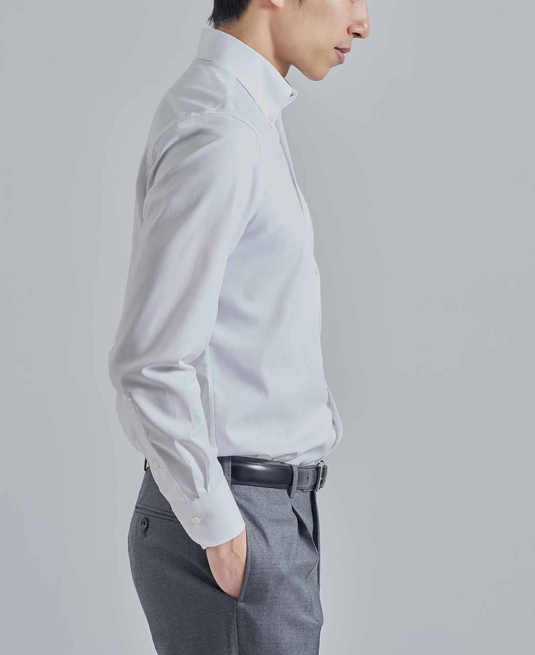 Driven by this vision, we developed J-TECH EASY CARE (formerly Known as PALPA Premium)—a special yarn made by wrapping cotton around recycled polyester. After three years of development and seven years on the market, it has become our No.1 best-selling fabric, loved for its exceptional comfort and durability. With only cotton touching your skin, it delivers the natural feel of cotton with a refined sheen. Comfort, functionality, and sustainability—this proudly Japan-made shirt offers it all. Experience the difference today.