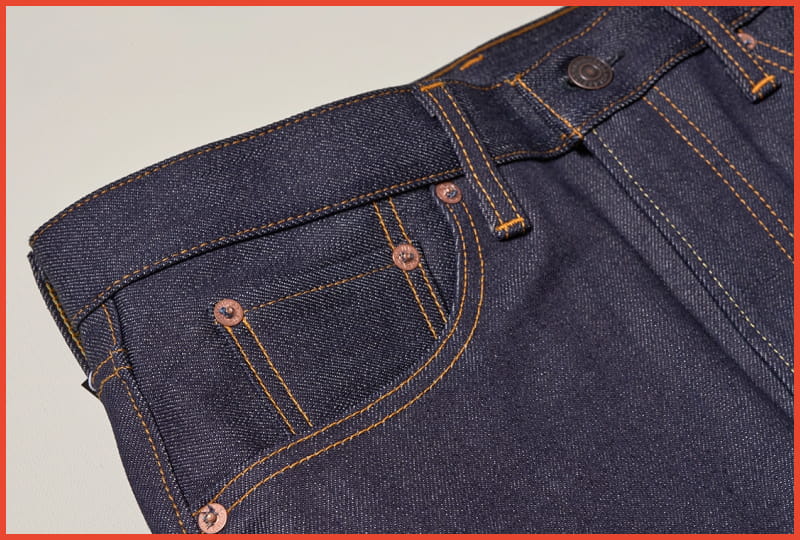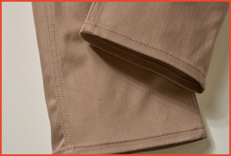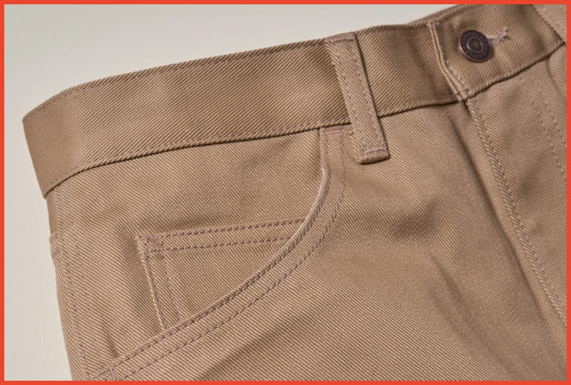 For the pairs using selvedge denim, we added rivets and used a design that aligns the red selvedge line with the outer side seam. For the non-denim fabrics, we opted for a minimalist design without much hardware, incorporating rolled-out seams, which help give the pants a rustic vintage feel that only grows more interesting with every wash.
