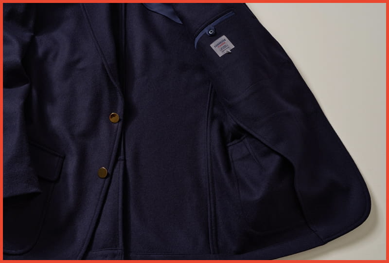 Kamakura Shirts’ version of this jacket is based on the preferred style of university students in the Fifties and sixties. Both can be dressed up with proper slacks and a necktie or dressed down with jeans. All of the details are pure Ivy: natural shoulders, a narrow lapel, a three-roll-two front closure, no front darts, a patch pocket on the chest, patch-and-flap side pockets, and a center hook vent at back.