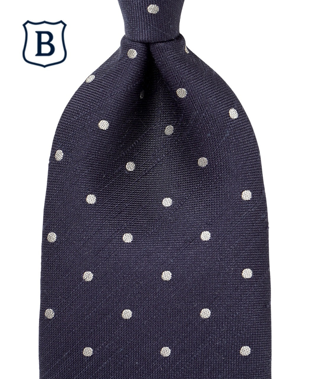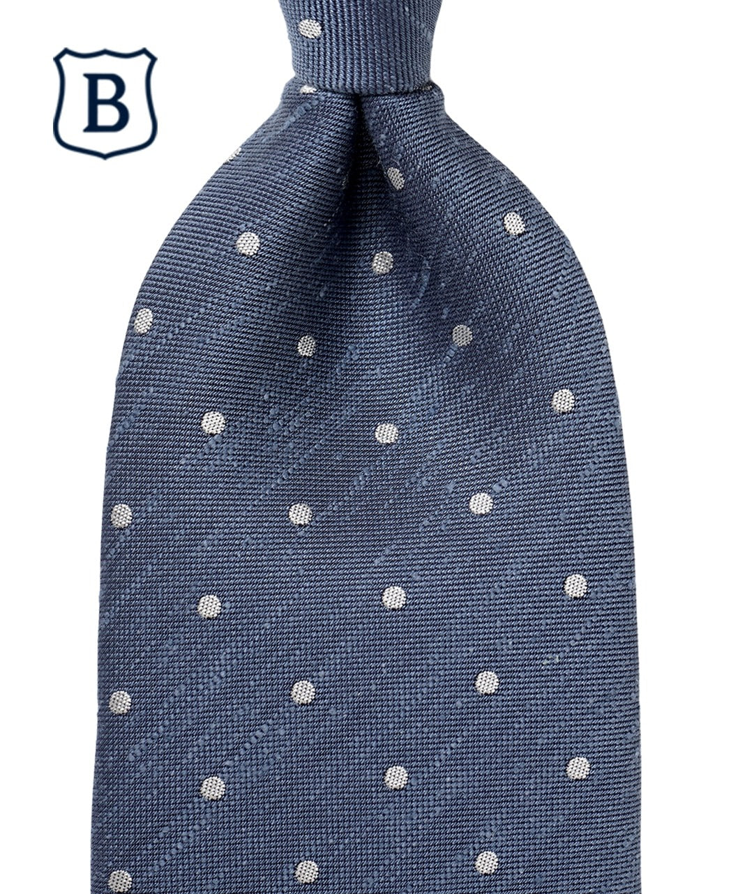 Because this tie is made from shantung fabric, it has a richer texture than ordinary silk. Shantung is a woven fabric that uses uneven silk spun yarns or raw silk for the weft, giving the surface a distinctive irregular grain. Although it is made of 100% silk, its texture pairs beautifully with spring–summer styles such as linen jackets and seersucker fabrics.