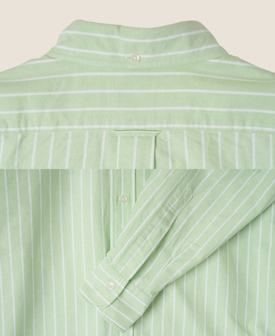 The green-based blazer stripe is one of the patterns that quietly conveys an intellectual character within the Ivy League style of America’s East Coast. It brings depth and ease to an outfit, with a presence that feels perfectly at home even in quiet moments spent reading or listening to music. This atmosphere is embodied in the Green Blazer Stripe Oxford Shirt—a modern interpretation of the Ivy spirit. With wear, the fabric becomes softer and gains character, blending naturally into everyday life. It is a contemporary classic that allows for subtle individuality.