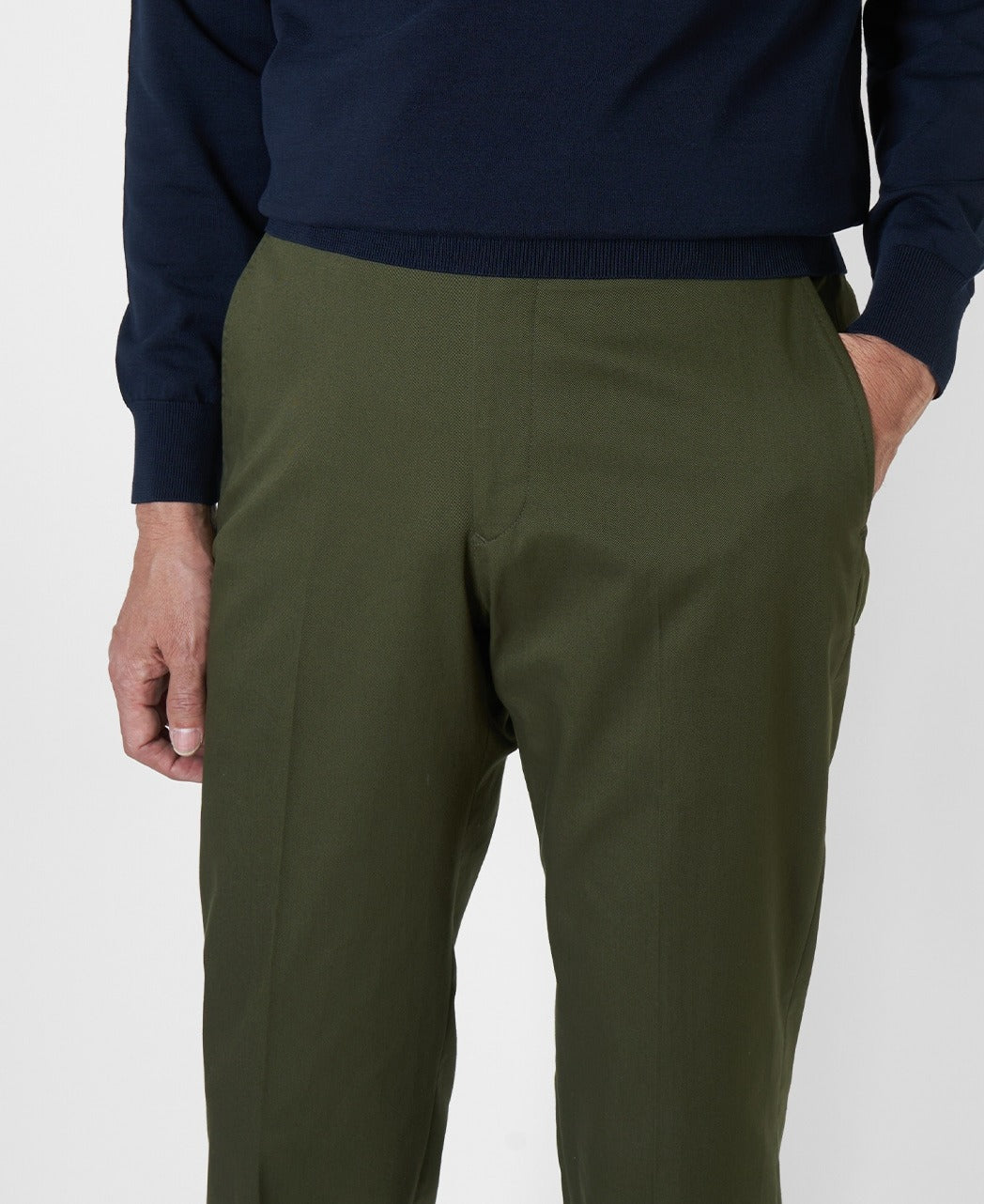 These cotton stretch pants combine a refined texture with exceptional comfort.