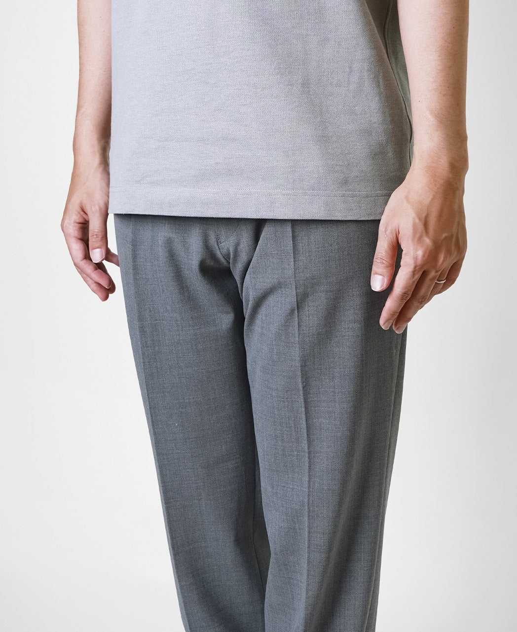 Drawcord Washable Slacks Wool slacks that can be washed at home. They offer the convenience of no dry cleaning while maintaining a clean, luxurious look.